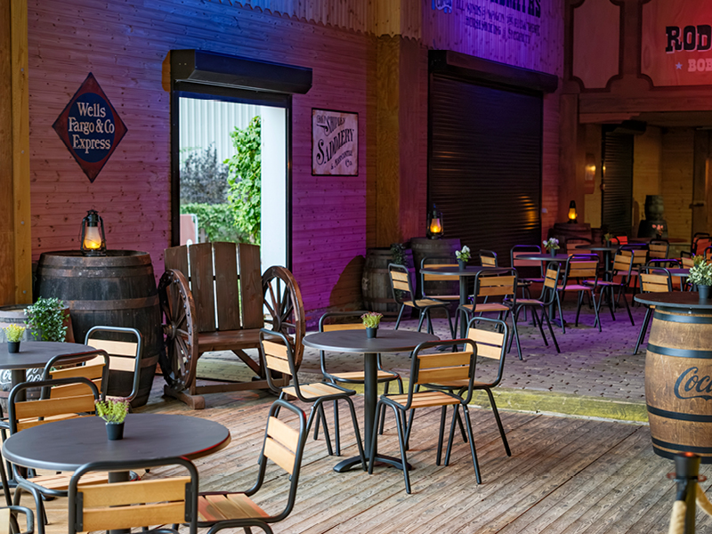 De Rodeo Ranch in Desperado City is dé uitvalsbasis voor plezante feestjes in westernstijl! Tussen de hoefijzers en de kakelende kippen kun je hier genieten van een lekkere barbecue of een gezellige receptie. Op aanvraag kun je de strijd aangaan met rodeostier des huizes door een ritje te wagen op de Bull Ride!