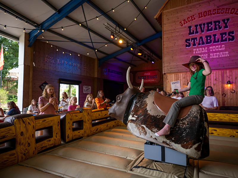 Le Rodeo Ranch à Desperado City est le lieu idéal pour organiser des fêtes sympas dans le style western ! Entre les fers à cheval et les poules caquetantes, vous pourrez y déguster un délicieux barbecue ou profiter d'une réception conviviale. Sur demande, vous pourrez affronter le taureau de rodéo de la maison en vous essayant au Bull Ride !